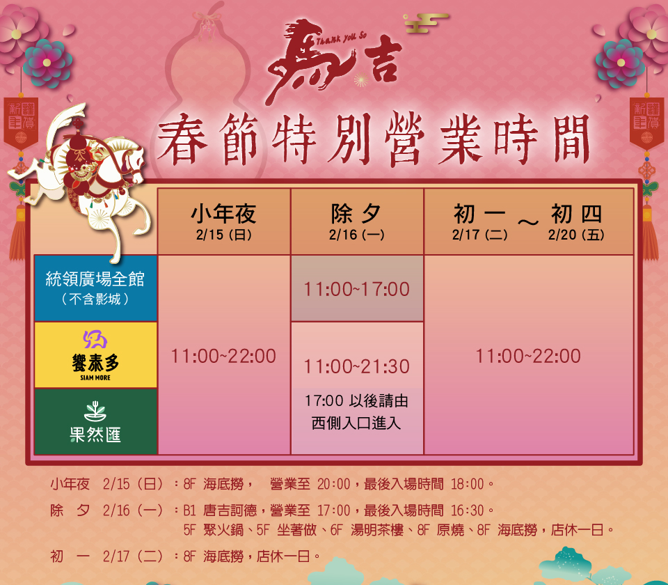 春節特別營業時間